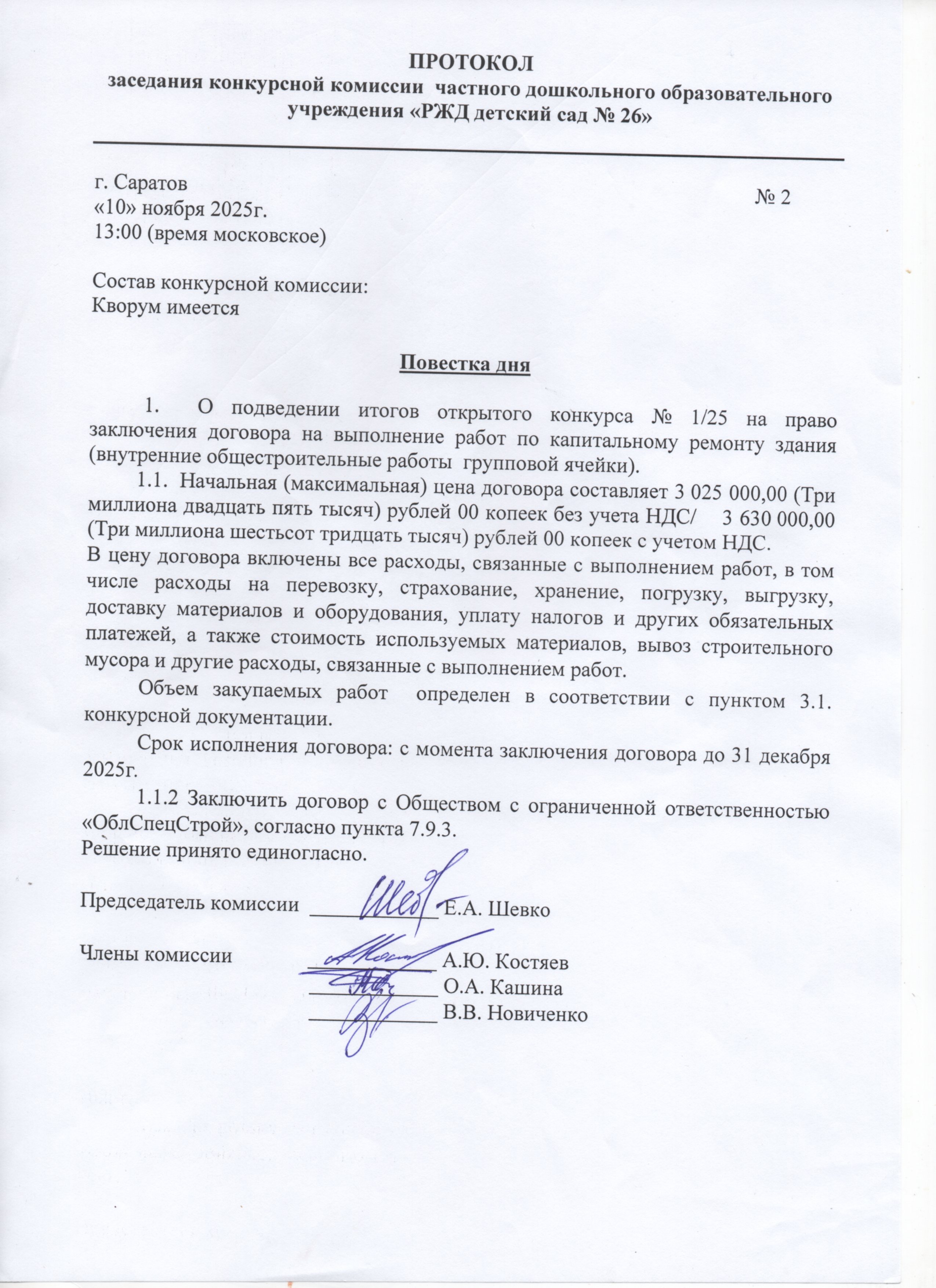 Протокол заседания конкурсной комиссии